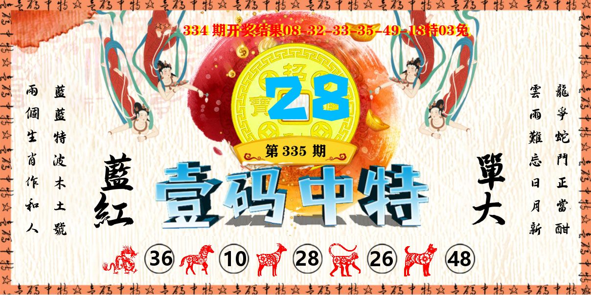 335期 绝杀三肖 【羊猴鸡】 开 ?? 准